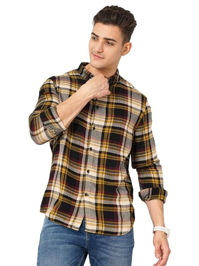 Men Regular Fit Checkered Full Sleeves Cutaway Collar Casual Shirt