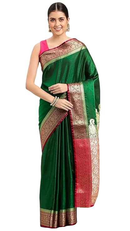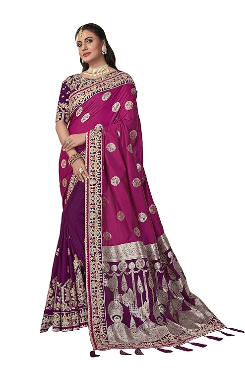 Women’s Banarasi Kanjivaram Satin Silk Saree Featuring Embroidered Patterns and Zari Detailing Preimum Thread Work 6.3 Meter Saree Polka Dot Banarasi Tissue