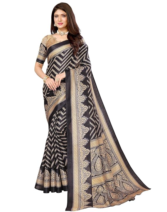 Women’s Woven Printed Art Silk Saree with Unstitched Blouse Material