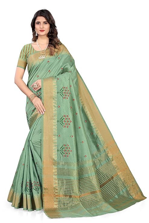 Women’s Woven Printed Art Silk Saree with Unstitched Blouse Material