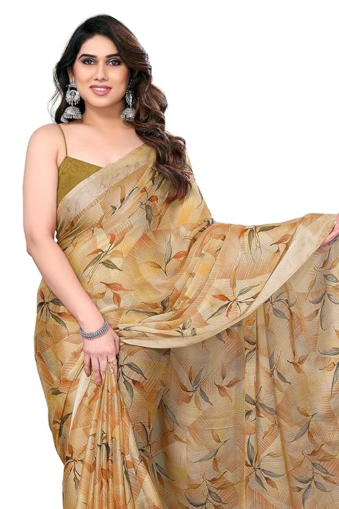 Women’s Chiffon Floral Printed Saree with Blouse Piece