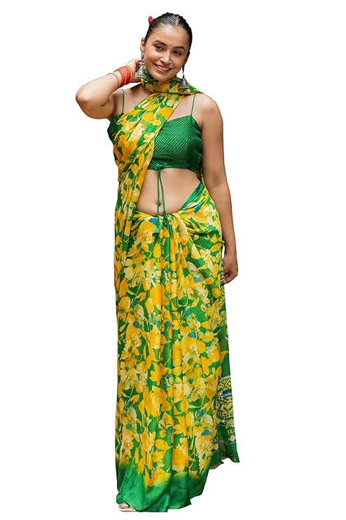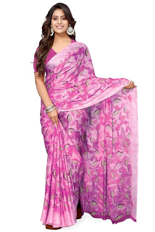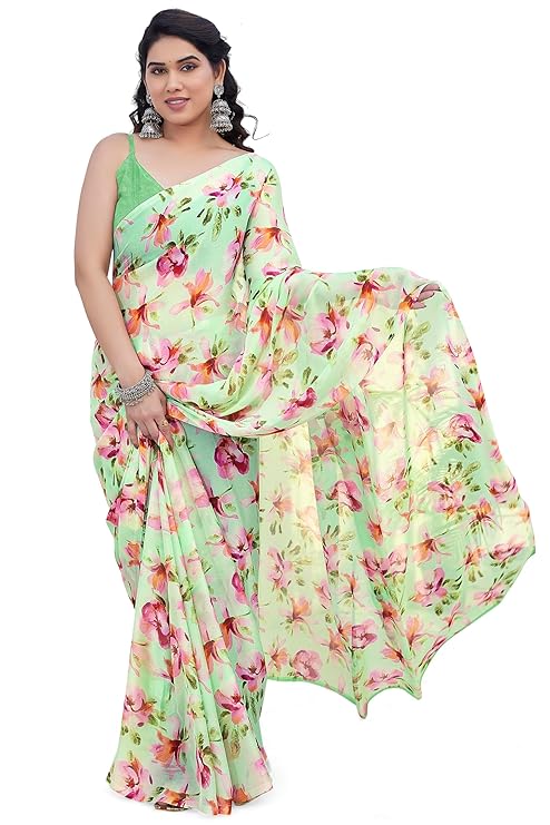 Women’s Chiffon Floral Printed Saree with Blouse Piece