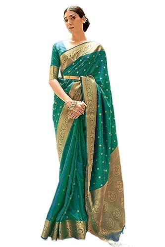 Women’s kanjivaram banarasi silk saree for festival Wedding silk with rich pallu Design sarees for women with Unstitched blouse piece