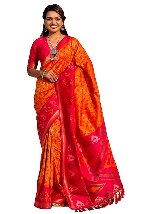Women’s Kanjivaram Patola Soft Silk Sarees With Unstitched Blouse Piece