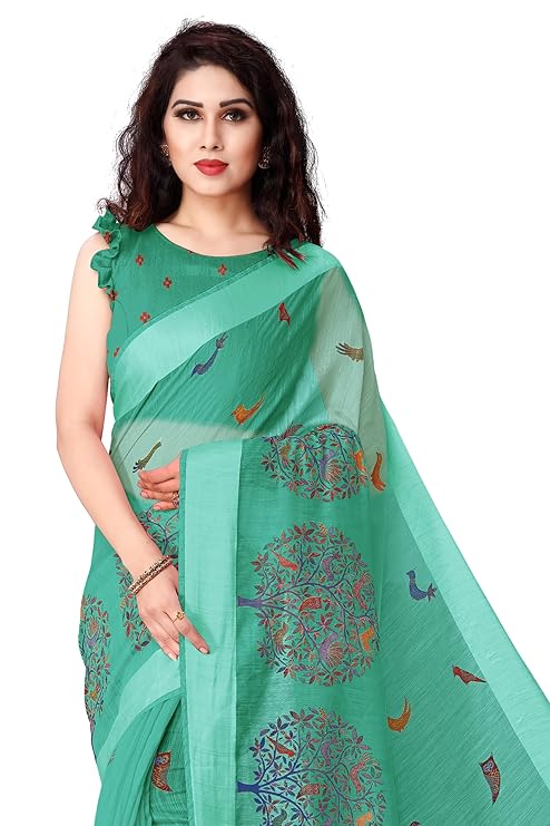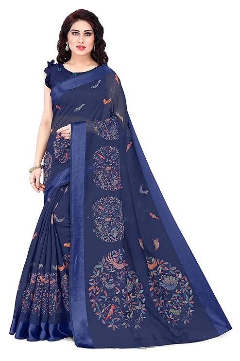 Women’s Cotton Blend Saree With Unstitched Blouse Piece