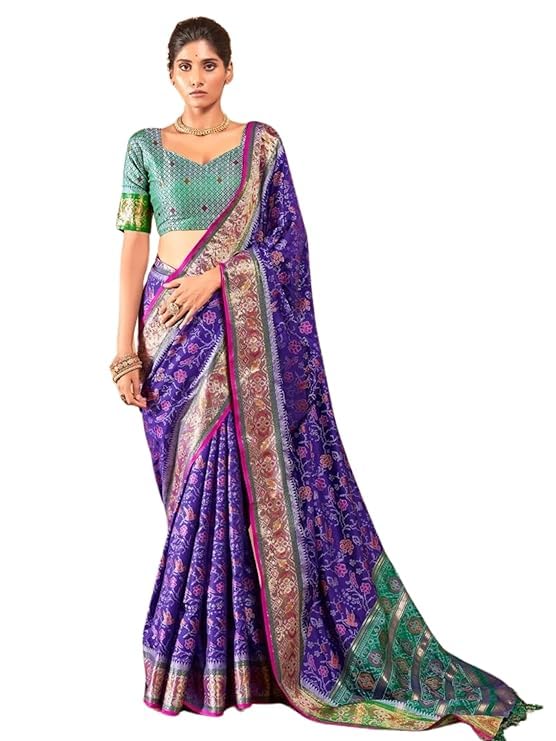 Women’s Trendy Banarasi Kanjivaram Indigo Color Art Silk Saree with Blouse Material