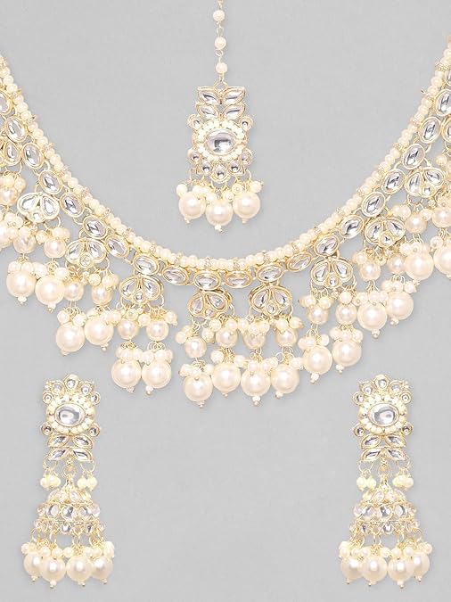 22K Gold-Plated Kundan Studded Pearl Beaded Jewellery Set
