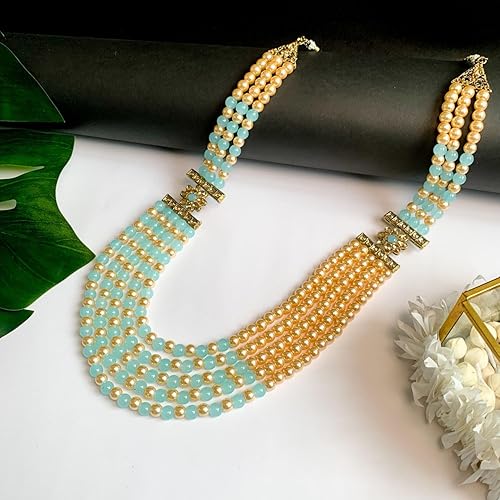 5 Layered Traditional Gold Plated Dulha Moti Mala with Beaded Maharaja Haar/Groom Necklace