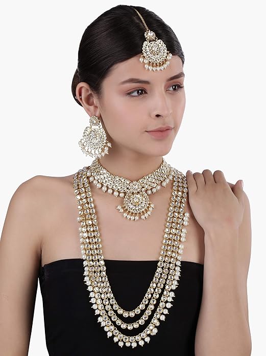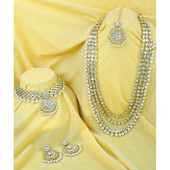 Gold Plated Kundan Long Necklace Choker Earrings Maangtikka Wedding Bridal Dulhan Jewellery