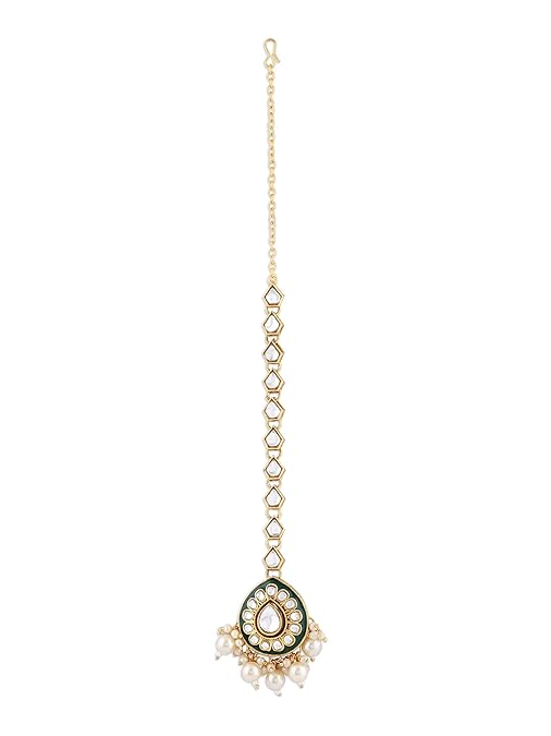 Be the first to review “Green Meenakari Kundan Bridal Long Dazzling Necklace Earring Maangtikka Set”
