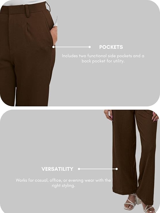 • Versatile Wide-Leg Fit – Ideal as wide leg trousers for women, these pants deliver a relaxed and modern look perfect for casual outings, office wear, or evening occasions.