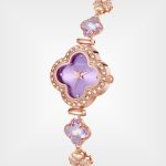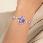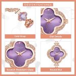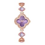 ORSGA Watch Bracelet Analog Clover Dial Wrist Watch for Ladies Luxury Diamond Stone Rose Gold Brass Strap Dress Watch for Women,Purple