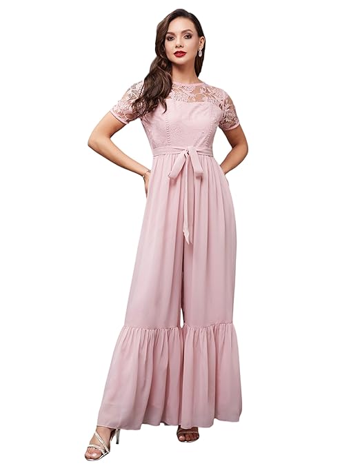 Be the first to review “Round Neck Short Sleeve Solid Lace Overlaid Regular Jumpsuit with Pockets” Cancel reply