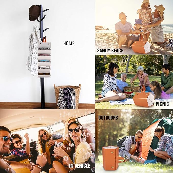 - Foldable & Portable: Lightweight sunglasses organizer can be folded into a box and go with a hand strap, save more space. Easy for outdoor activities or travel.