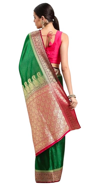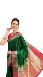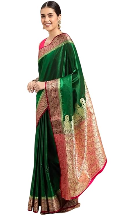 Women’s Banarasi Kanjivaram Satin Silk Saree Featuring Embroidered Patterns and Zari Detailing Preimum Thread Work 6.3 Meter Saree Polka Dot Banarasi Tissue