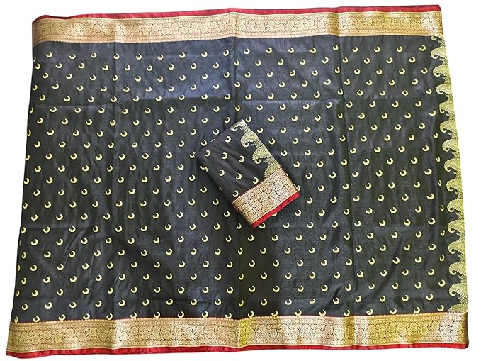 Women’s Banarasi Kanjivaram Satin Silk Saree Featuring Embroidered Patterns and Zari Detailing Preimum Thread Work 6.3 Meter Saree Polka Dot Banarasi Tissue