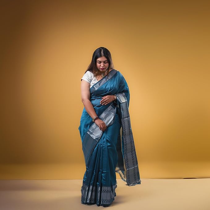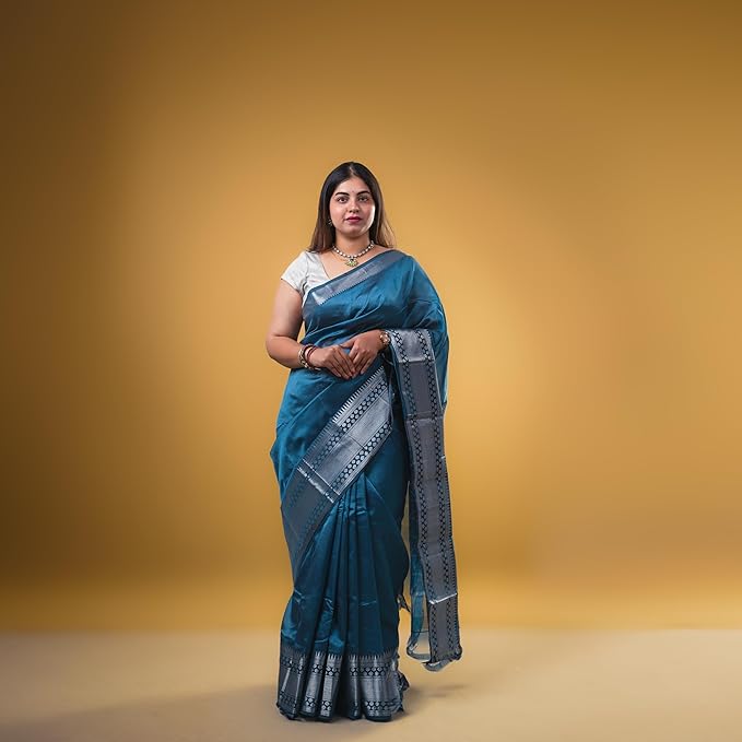 Women's Banarasi Kanjivaram Satin Silk Saree Featuring Embroidered Patterns and Zari Detailing Preimum Thread Work 6.3 Meter Saree Polka Dot Banarasi Tissue