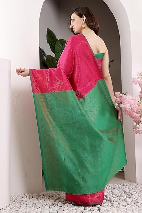 Women’s Banarasi Silk Saree With Golden Zari Work With Blouse Piece