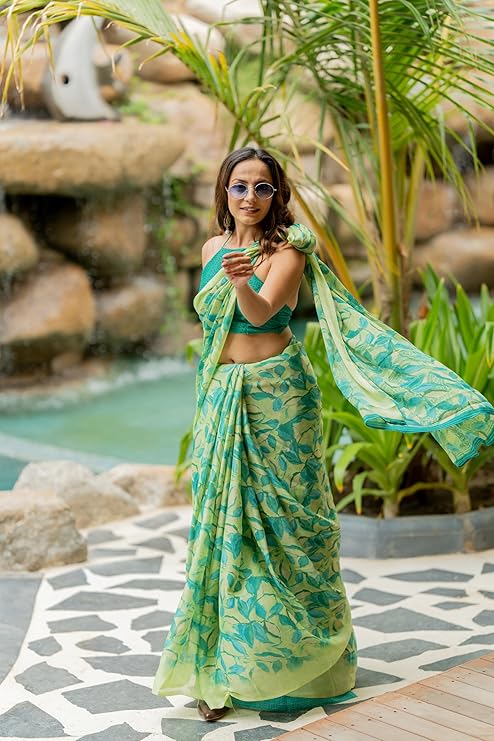 Women’s Chiffon Floral Printed Saree with Blouse Piece