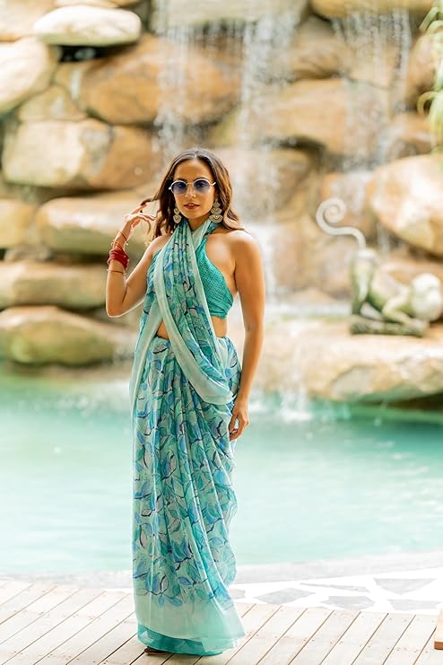 Women’s Chiffon Floral Printed Saree with Blouse Piece