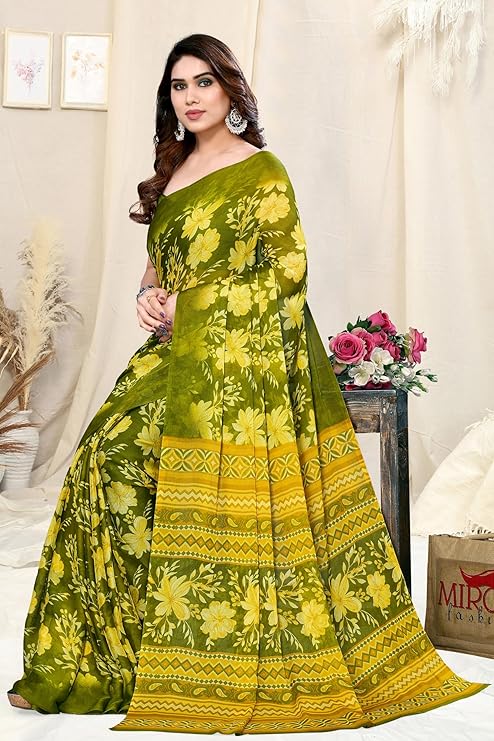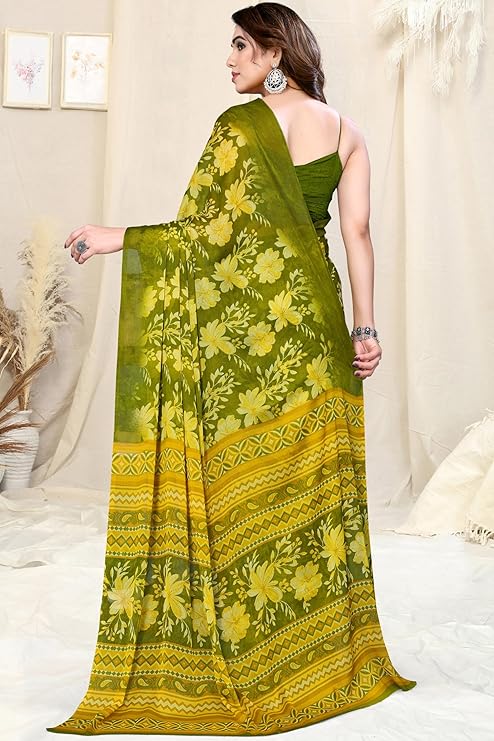 Women’s Chiffon Floral Printed Saree with Blouse Piece
