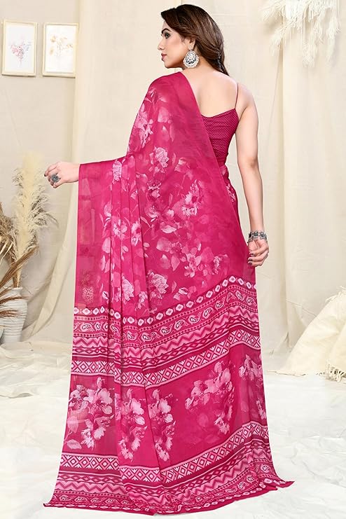 Women's Chiffon Floral Printed Saree with Blouse Piece