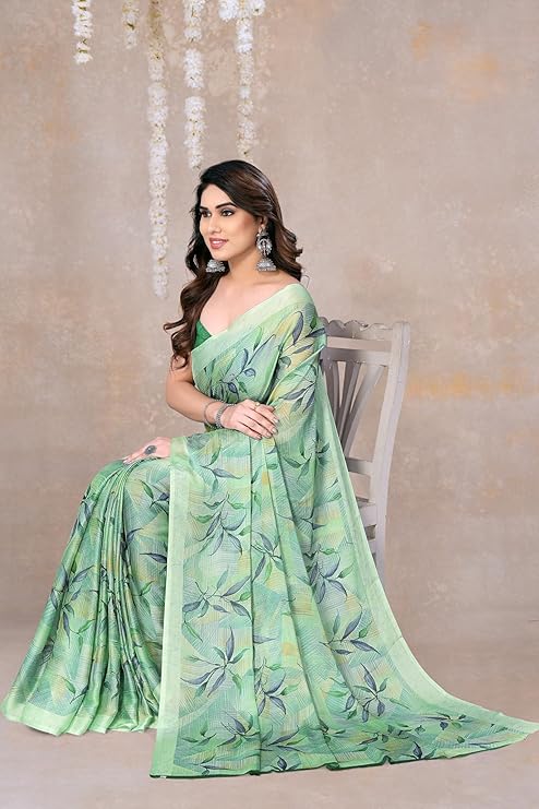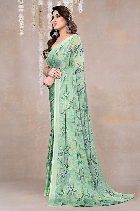 Women’s Chiffon Floral Printed Saree with Blouse Piece