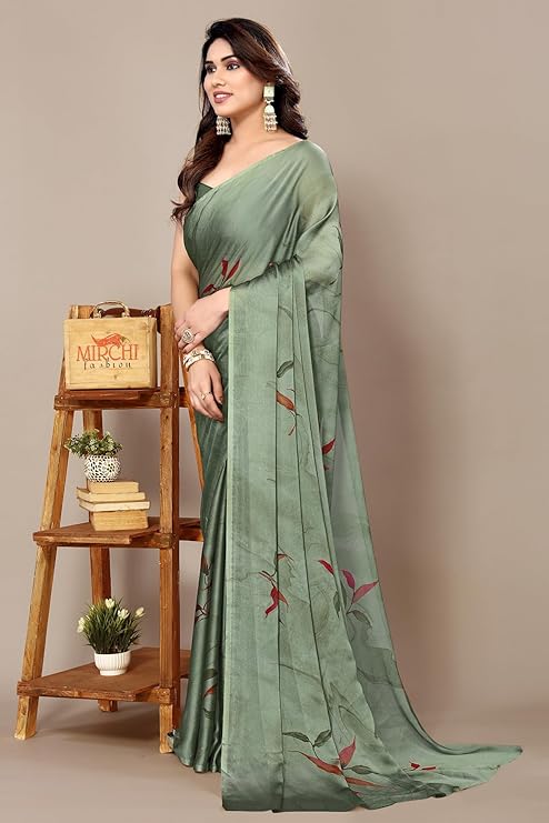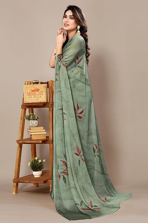 Women’s Chiffon Floral Printed Saree with Blouse Piece