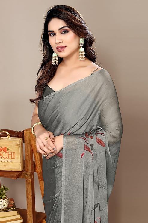 Women's Chiffon Floral Printed Saree with Blouse Piece