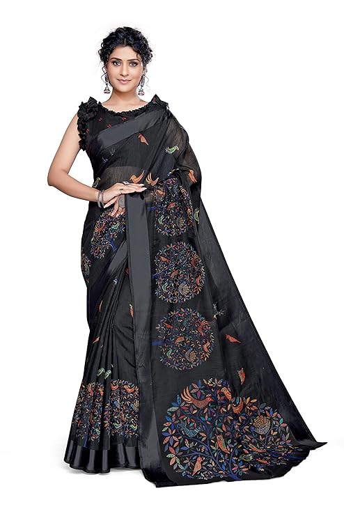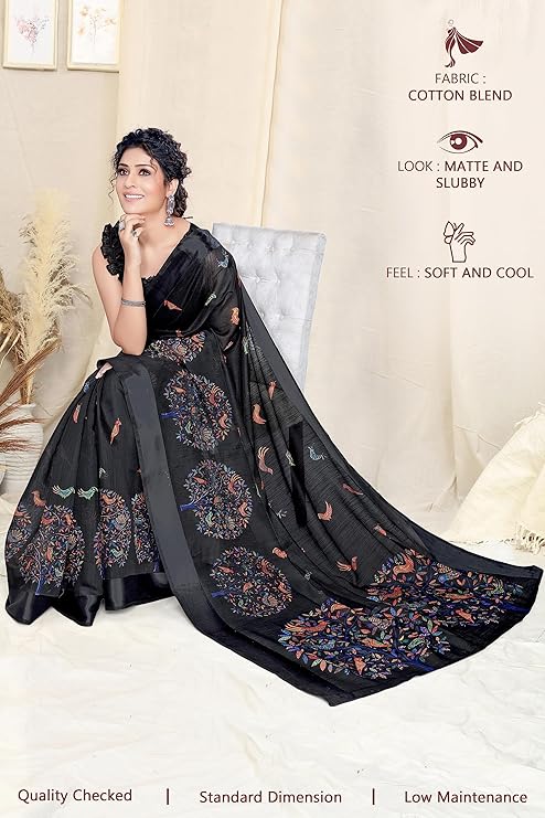 Women’s Cotton Blend Saree With Unstitched Blouse Piece