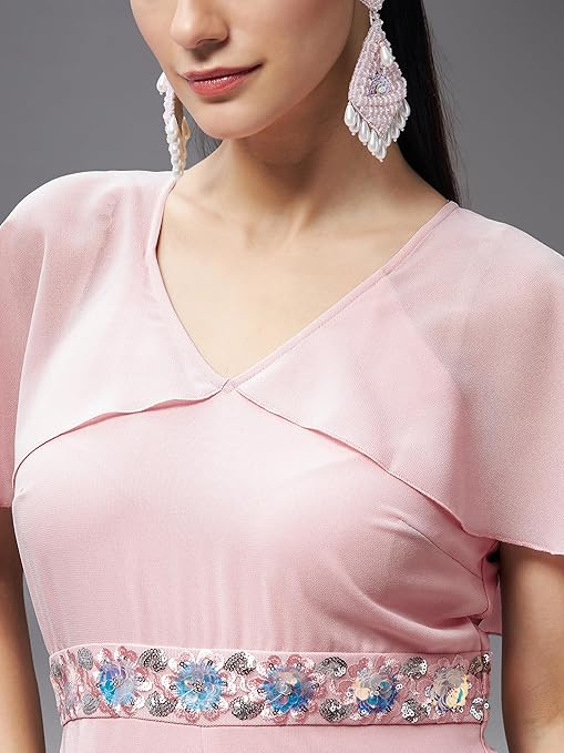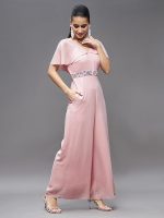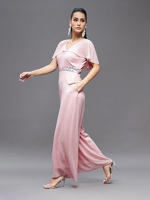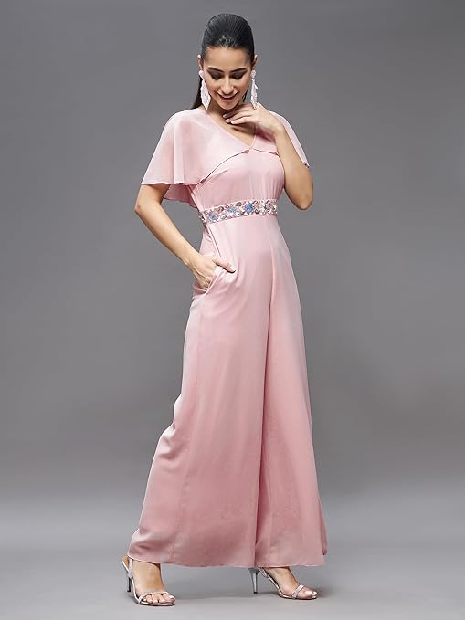 Women’s Georgette V-Neck Cape Solid Layered Regular Jumpsuit