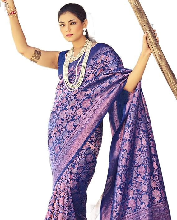 Women’s kanjivaram banarasi silk saree for festival Wedding silk with rich pallu Design sarees for women with Unstitched blouse piece