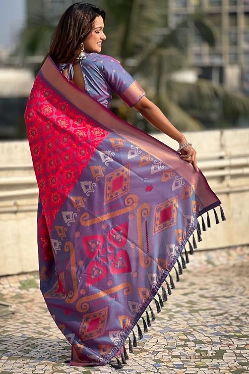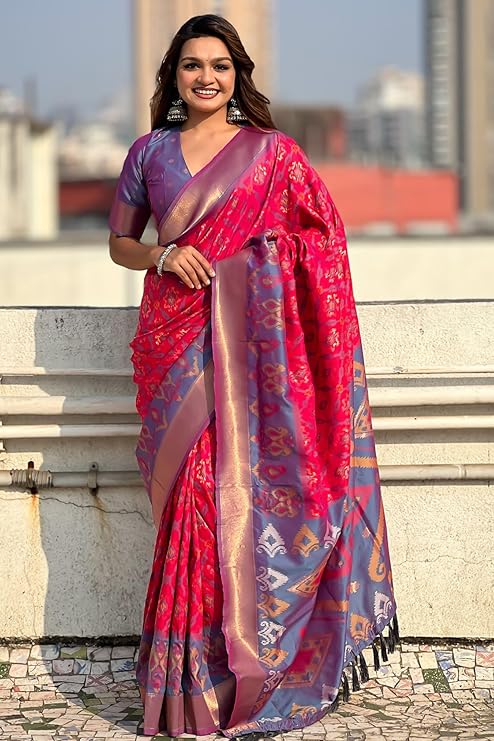 Women’s Kanjivaram Patola Soft Silk Sarees With Unstitched Blouse Piece