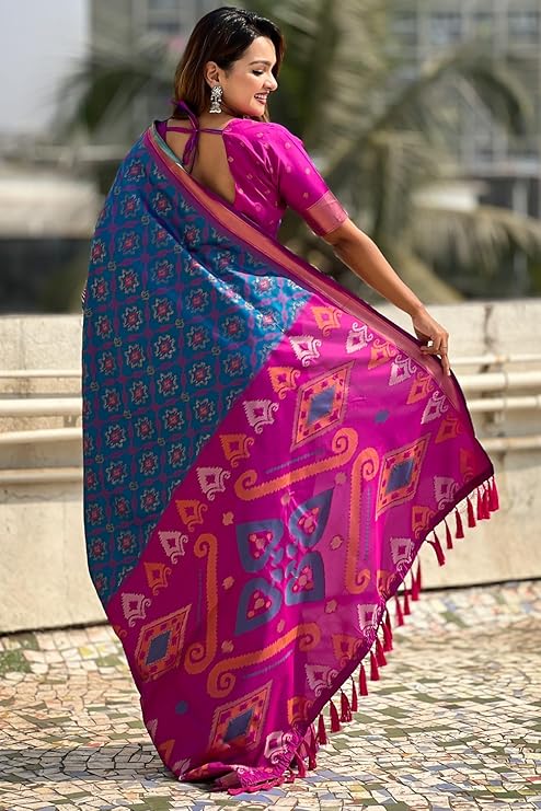 Women’s Kanjivaram Patola Soft Silk Sarees With Unstitched Blouse Piece