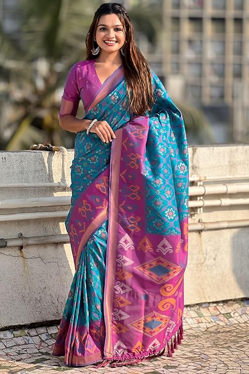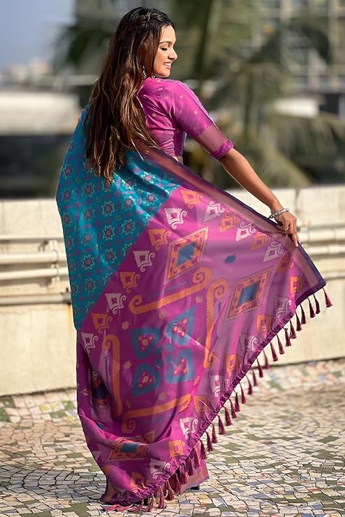 Women's Kanjivaram Patola Soft Silk Sarees With Unstitched Blouse Piece