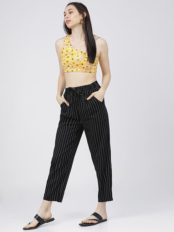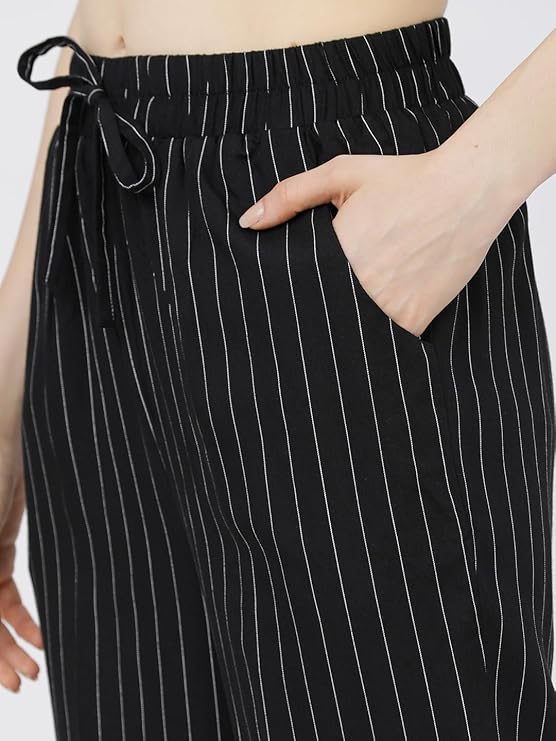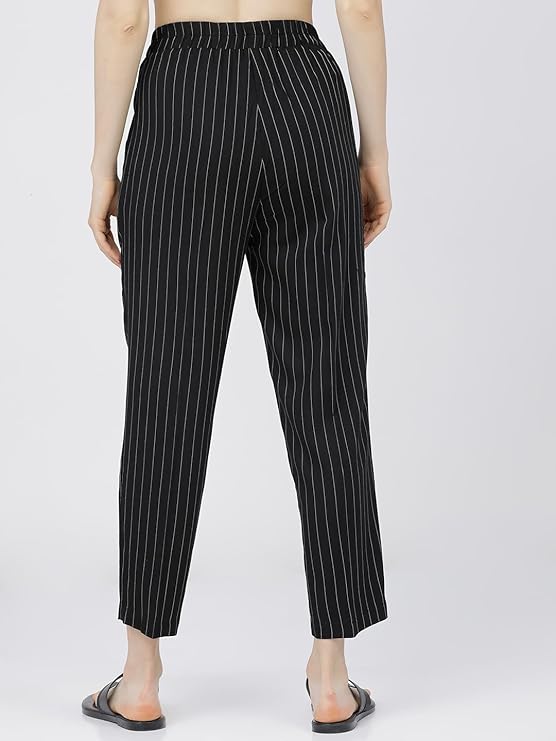 Be the first to review “Women’s Regular Fit Black Striped Pleated Trousers”