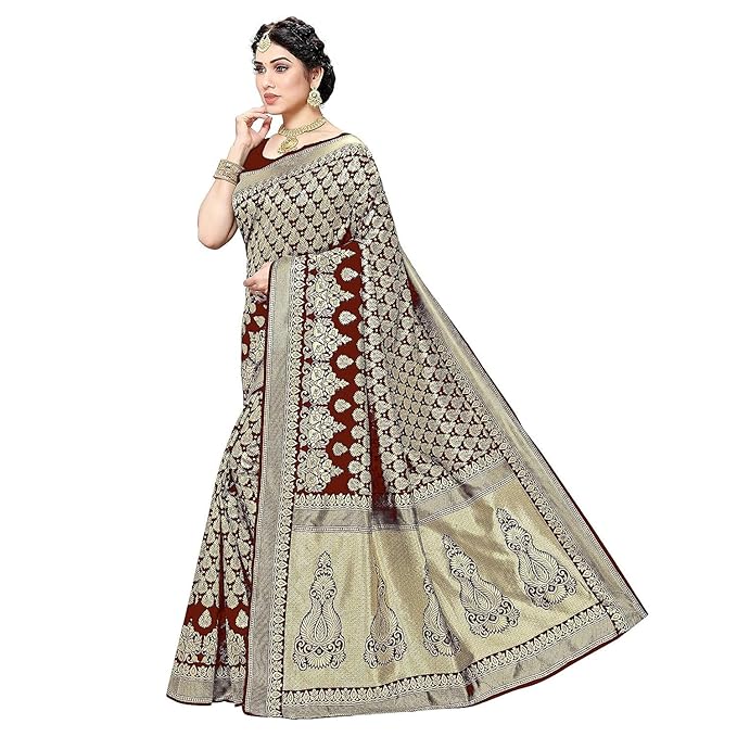 Women's Soft Fancy Silk Saree With/ Hand Work Lace Boarder & Comes With Unstitched Blouse Piece