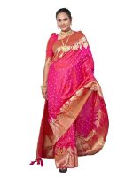 Women's Trendy Banarasi Woven Saree with Heavy Jacquard Work, Elegant Design, Silk Saree with Maching Lace Border Unstitched Blouse Piece for Weddings & Festive Occasions