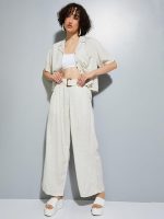 White Textured Full Length High Rise Formal Women Regular Fit Trousers Original price was: ₹1,599.00.Current price is: ₹999.00.
