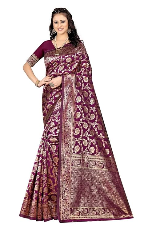 Women’s Woven Printed Art Silk Saree with Unstitched Blouse Material