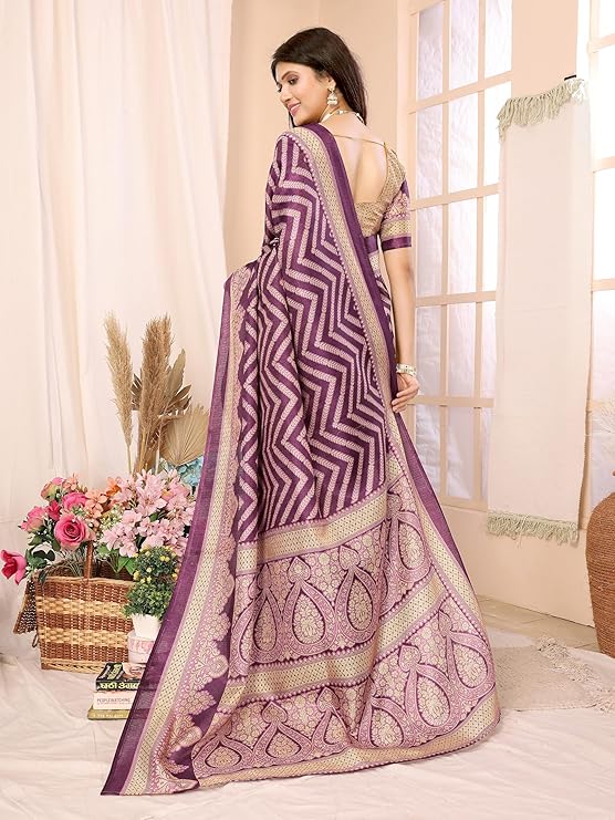 Women’s Woven Printed Art Silk Saree with Unstitched Blouse Material