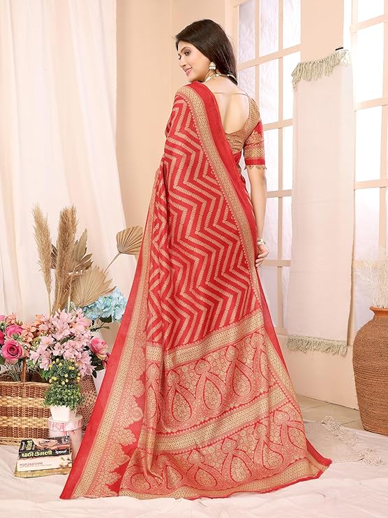 Women’s Woven Printed Art Silk Saree with Unstitched Blouse Material